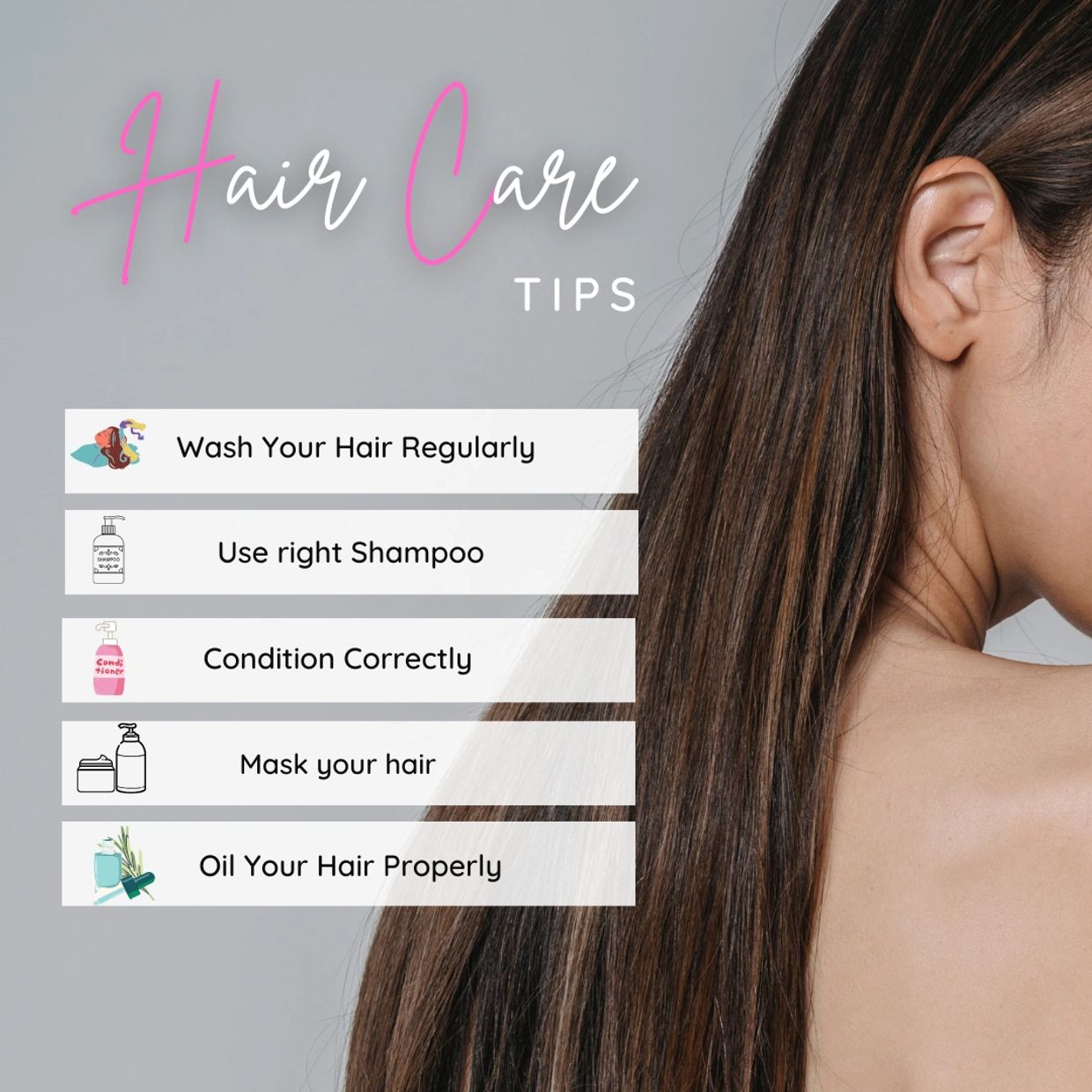 Step 7: Learn your hair type. Whether you have curly, straight, coarse, fine, or another type of hair, there are products and routines that will work for you . ...